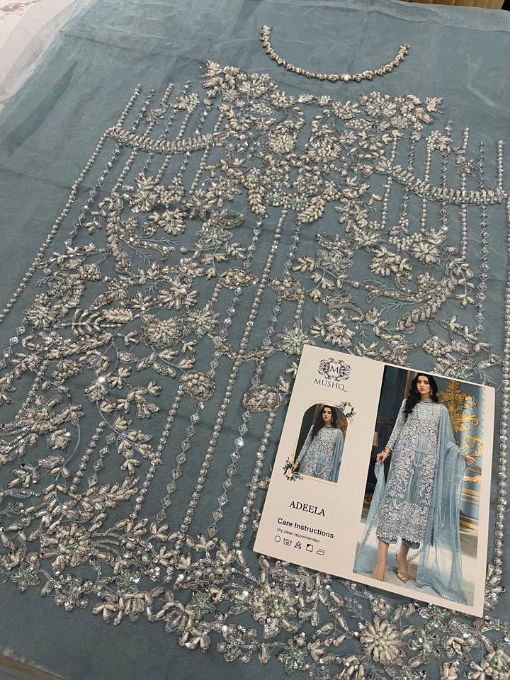 This Olive shade long shirt crafted from pure silk organza is heavily ornamented with Crystal's and thread work. This luxurious outfit is finished and a pearl embellished dupatta for an ethereal look.